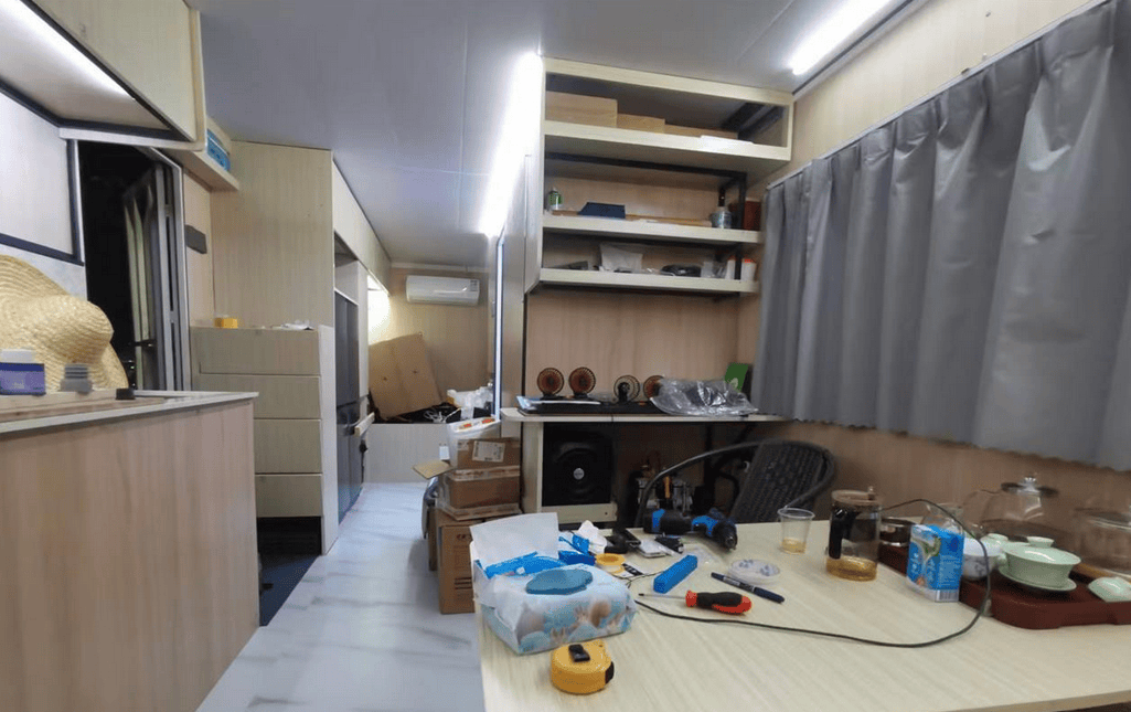 为了制这辆“沉卡房车”,温先生给本人“加了半年班”,没日没夜地自学电焊、电工、木匠、电脑制图……他要本人设想,本人施工,本人维修。从一辆只要车头和车底板的春风沉型平板运输车,他硬是把它成了一个接近17平方米、高2米的“挪动城堡”!车厢里包罗万象:厨房、卫生间(1米×1。5米,和家里一样大!)、洗衣机、空调、热水器、马桶、沙发、冰箱、微波炉……简曲就是麻雀虽小,五净俱全。为了实现这个胡想,温先生网购了1500多个快递!他要把这些零星的零件,成一个属于本人的家。过程中,他也曾想放弃,面临浩荡的工程,他这个“工商办理专业的‘小白’”也曾感应力有未逮。但最终,他仍是咬牙了下来。