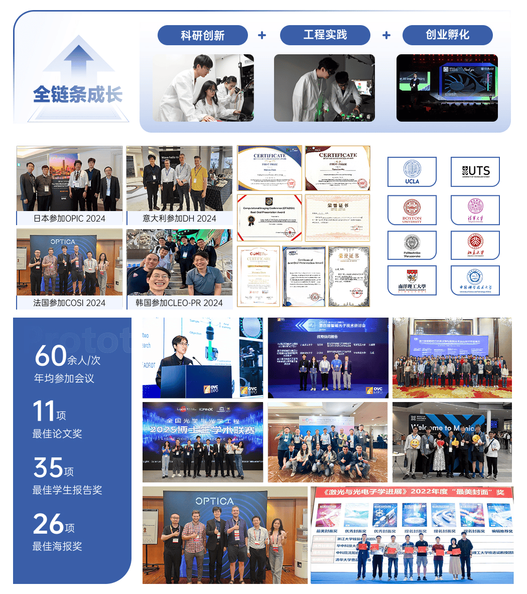 学生可深度参取国度级沉点项目,投身于原创性手艺研发、前沿仪器配备研制及核默算法开辟工做,正在实践中科研思维、提拔立异能力。打制“四位一体”科创平台集群,支撑学生从导立异创业项目,供给工程实践和创业孵化平台,实现从科研到创业的全链条成长。按期举办学术沙龙和交换勾当,供给取范畴内出名专家和优良学生交换机遇。配套经费支撑论文颁发、专利申请及国际会议交换,学生获各类会议最佳论文/演讲/海报70余次。