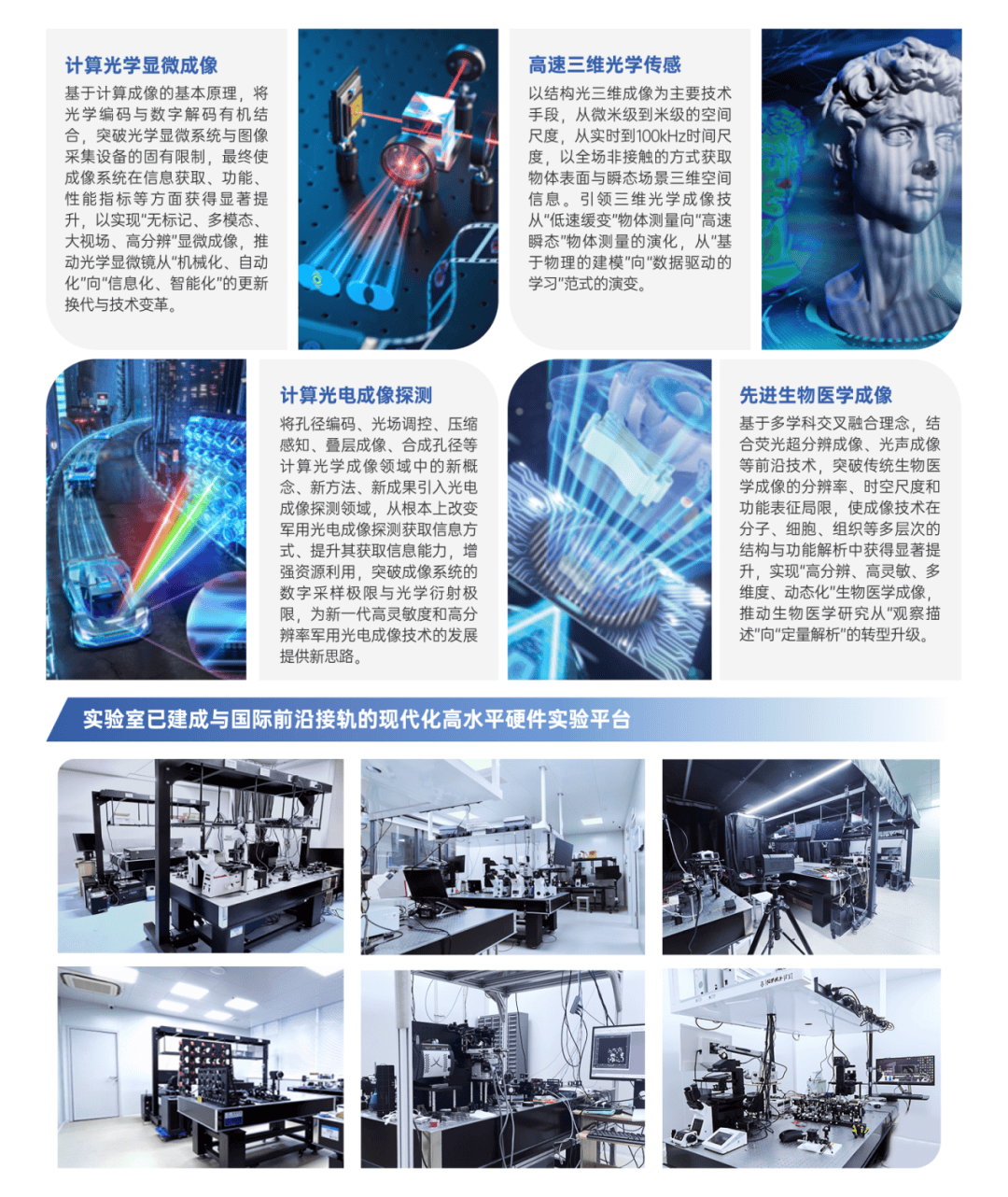 尝试室面向世界科技前沿、面向经济从疆场、面向国度严沉需求、面向人平易近生命健康,连系“光学工程”国度一级沉点学科以及南理工电子消息学科劣势,针对计较光学显微成像、高速三维光学传感、计较光电成像探测、先辈生物医学成像四大研究标的目的,开展新型“计较光学成像”的机理摸索、工程实践以及先辈仪器的研制工做。尝试室承担基金委国度严沉科研仪器研制项目、基金委沉点项目、科技部沉点研发打算、科技委立异特区项目、根本加强基金沉点项目等项目40余项,总经费1。57亿元。